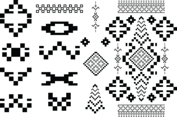 Square vector illustration Ethnic pixel embroidery designs for rugs, curtains, pillows, bags, clothes. Geometric templates for design.