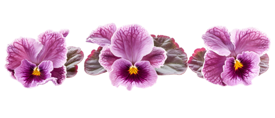 Pack African Violet Set in Different Poses Against Transparent Background for Floral Arrangements, Botanical Illustration, or Garden Design