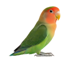 Isolated rosy-faced lovebird, cute and colorful bird with green wings and orange head