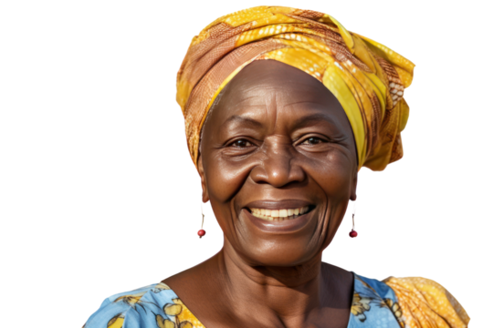 Smiling young woman wearing traditional african dress using smartphone on transparent background