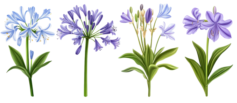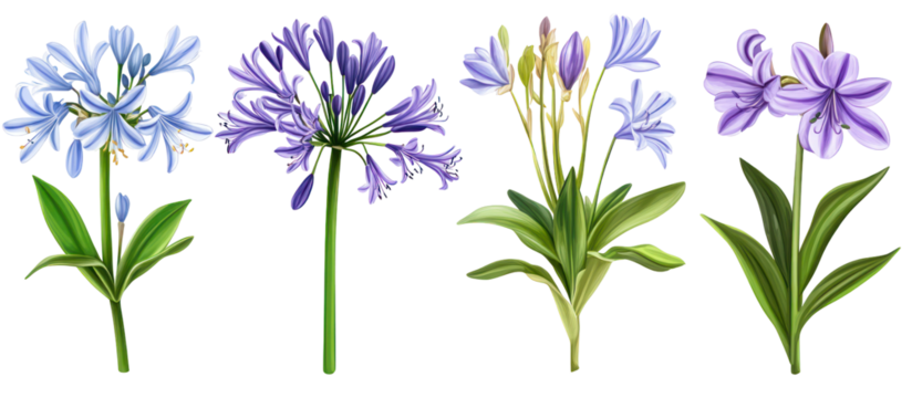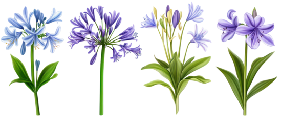 Set of Agapanthus Africanus Plants - Group of blooming Agapanthus africanus plants on transparent background