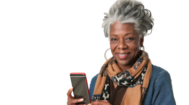 African elderly woman smiling on transparent background. Subjects related to old age. Afro american. Transparent background png cutouts. Retirement home. African country.