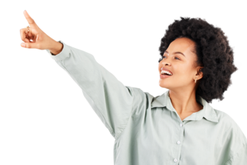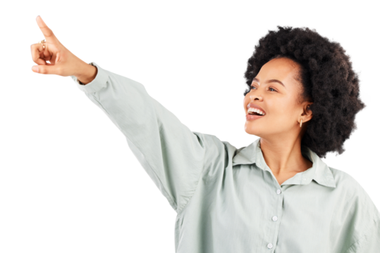 Portrait of a smiling woman with curly hair on a transparent background