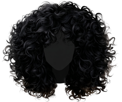 Black curly afro textured hair circle, fashion accessory, beauty and style, wig element on transparent background