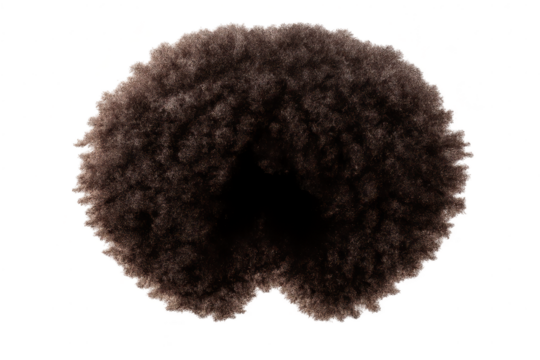 Curly wig afro hairstyle black synthetic hair costume accessory isolated on transparency background retro style party prop fun fluffy voluminous