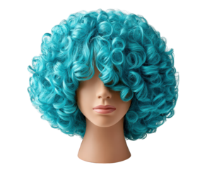 Curly blue afro wig isolated on transparency background, synthetic hair costume accessory, vibrant and playful style for party, cosplay, or theatrical performance, fun and bold appearance