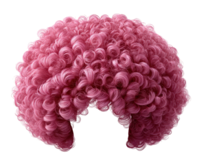 Curly pink wig party accessory synthetic hair costume vibrant afro style fun playful fashion isolated on transparency background