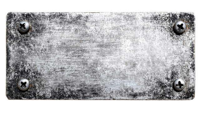 Rustic metal sign with screws on a transparent background
