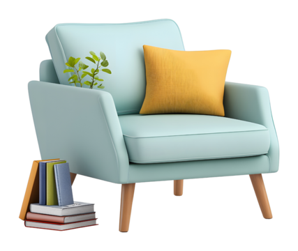 Cozy reading corner with stylish chair and books modern living room home decor bright environment eye-level view comfort and style