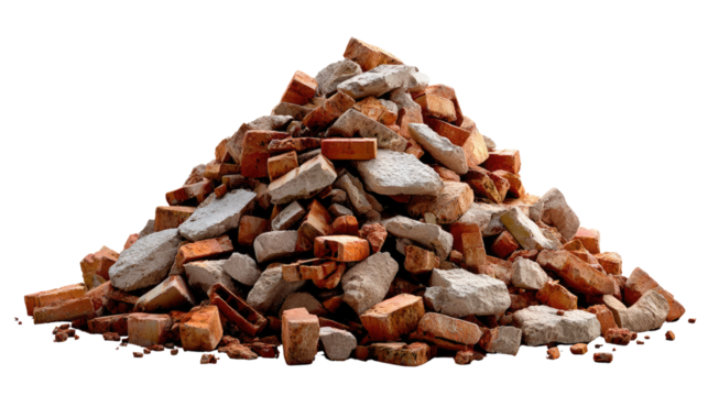 Construction Debris Pile: A pile of construction debris, including broken bricks and concrete, symbolizes demolition, waste, and the aftermath of construction.