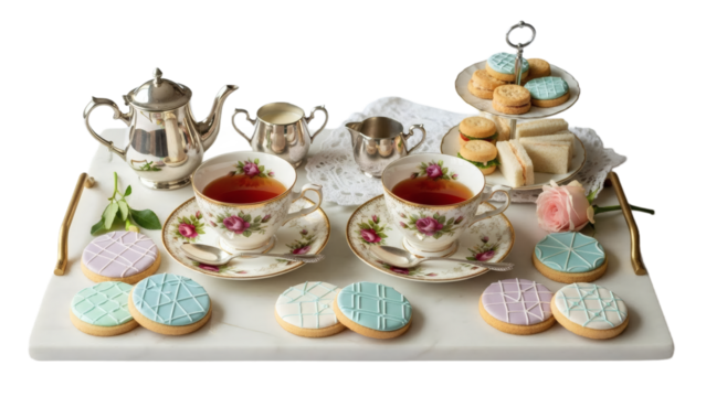 Elegant afternoon tea set with desserts