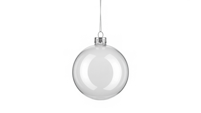 christmas ball bauble glossy transparent glass blank christmas silver hanging from top upright 3D rendering