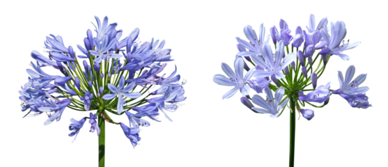 Two pairs of tall blue agapanthus flowers isolated on transparent background