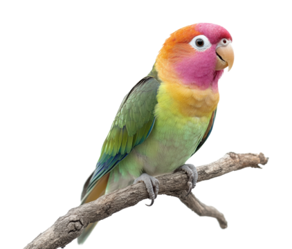 Colorful lovebird perched on a branch nature wildlife. Isolated on transparent background, png. isolated on transparent background, png