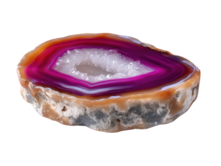 Isolated agate stone showcasing unique patterns and colors on a transparent background