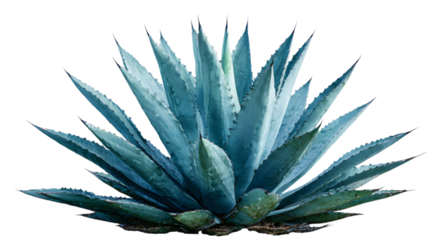 Blue agave or aloe vera plant in natural form, isolated on transparent