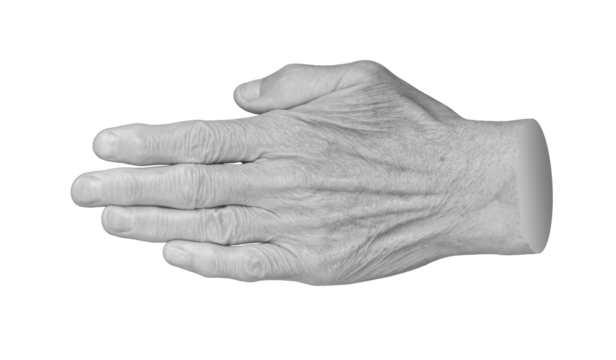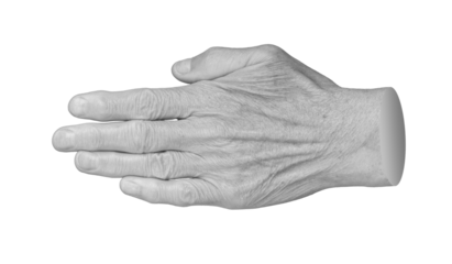 Aged hand with wrinkled skin, palm and fingers, isolated , cut out transparent
