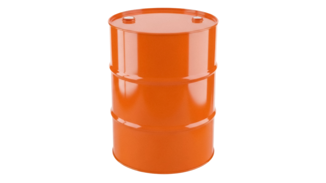 Orange metal barrel isolated PNG, industrial container for oil or chemicals on transparent background, storage drum for hazardous materials