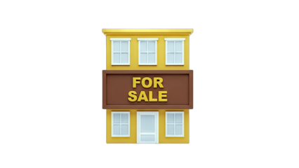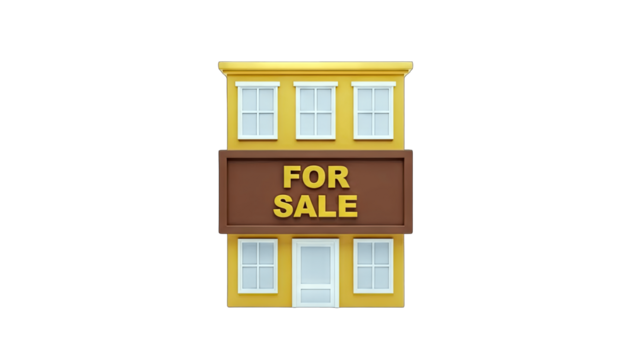 Cartoon House For Sale Sign on White Background