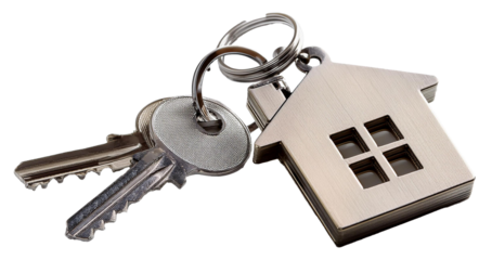 House shaped key on a transparent background symbolizing real estate, mortgages, and the concept of owning a home