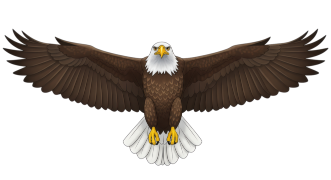 Eagle head close-up digital illustration on transparent background showing fierce predatory raptor bird looking at viewer