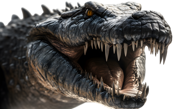 Realistic Tyrannosaurus Rex Head with Open Mouth and Sharp Teeth, isolated on a transparent background, cutout, PNG