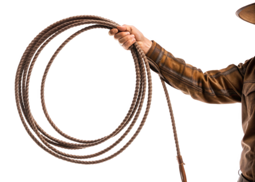 hand holding Cowboy whip isolated on a transparent background.