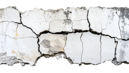A close-up view of cracked concrete showcasing intricate textures and fissures. The uneven surface highlights the aging and wear of the material.
