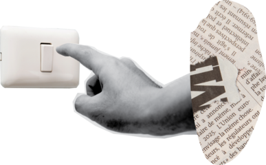 hand holding the light switch art collage