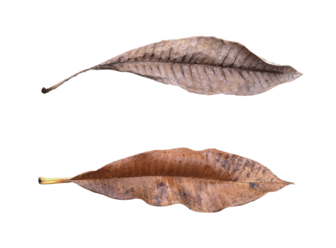 Dry brown leaves with black spots fell from the tree long ago.  PNG file for mock-up
