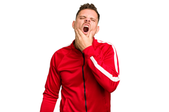 Young caucasian handsome man isolated having a strong teeth pain, molar ache.