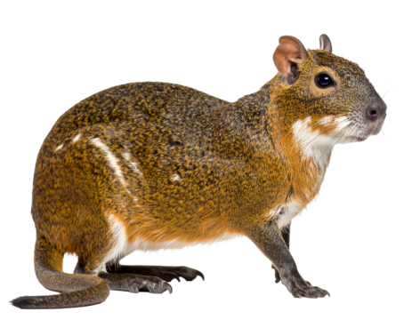 An Azara's agouti, isolated on a white background, a small rodent native to South America.