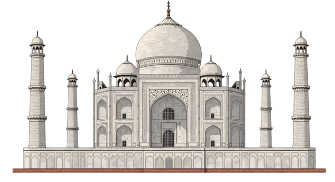 The taj mahal, an ivorywhite marble mausoleum in agra, india isolated on transparent background