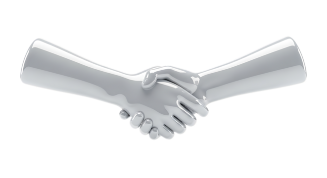 Modern stylized handshake symbolizing partnership trust cooperation teamwork agreement business relationship unity 3D illustration isolated on white background