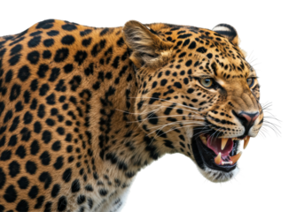 Isolated Roaring Leopard Displaying Ferocious Feline Power Agression
