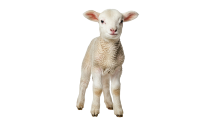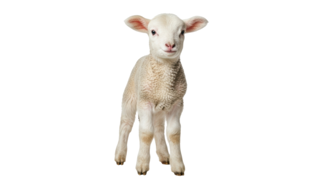 Isolated newborn lamb, portrait on its own, small and cute, looks at the camera