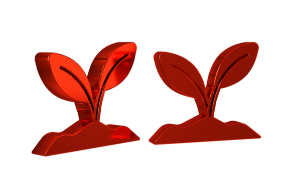 Red Sprout icon isolated on transparent background. Seed and seedling. Leaves sign. Leaf nature.
