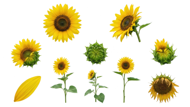 Sunflowers Collection: Watercolor Style, Isolated on White