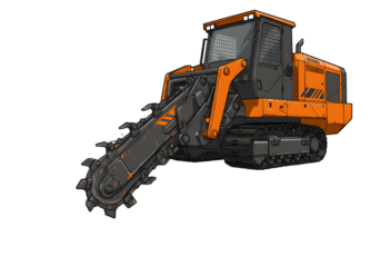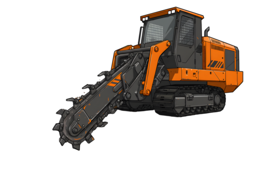 Isolated Illustration Of Heavy Excavator Machinery On Black Background