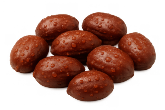 Fresh wet pecans pile with water drops showing healthy organic food, natural brown nuts, raw ingredient on transparent background