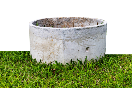 a concrete septic tank on ground with green grass for growing plant