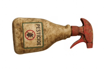 Dirty and used pesticide spray bottle isolated on transparent background, ideal for agriculture, gardening, or pest control visuals