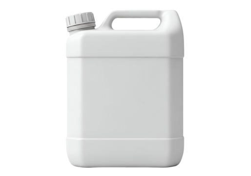 Clean White Plastic Jerrican with Handle and Screw Cap, Ideal for Industrial Chemicals, Fuel, or Household Liquids, Empty Generic Container isolated on transparent background