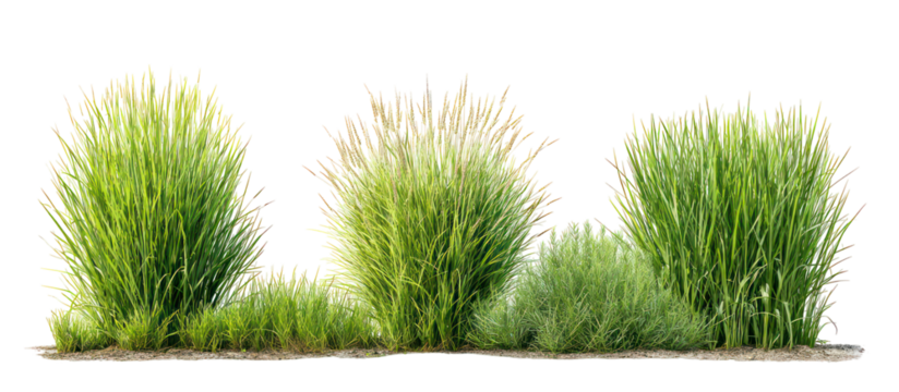 Sets of buffalo grass creeping bentgrass and redtop grass side by side on transparent background