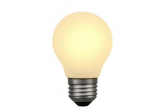 Led light bulb illuminating, representing innovation, bright ideas, energy saving, and creative solutions, on transparent background