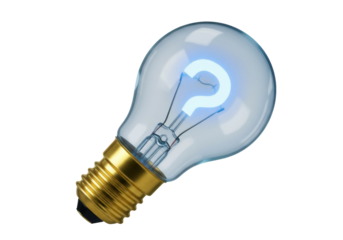 Light bulb with question mark inside isolated PNG on transparent background, concept for ideas and problem solving