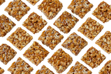 Peanut Chikki on white background. peanut Chikki is an Indian sweet dish made with jaggery and peanut. Indian festival makar Sankranti special sweet.