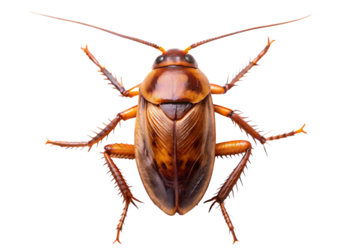 Close up top down view of a brown cockroach  isolated on white background PNG.AI Generated.
