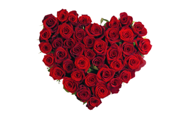 Bouquet of dark red roses arranged in heart shape, isolated on transparent background. Generative AI