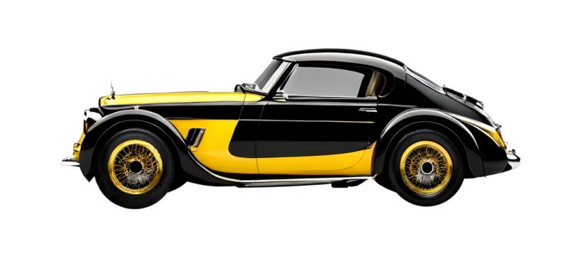 Yellow and black vintage car on clear or transparent background, ready for object and retouch design. Generative AI.